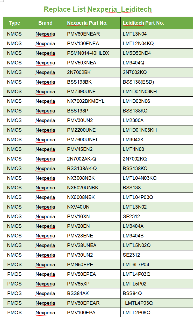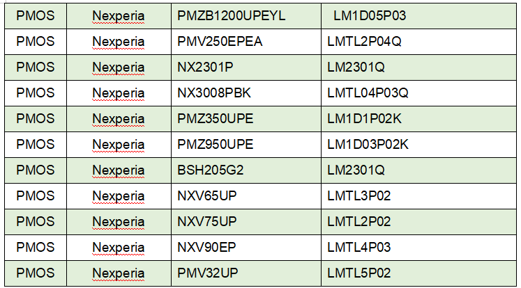 雷卯替代Nexperia(安世)MOSFET 產(chǎn)品列表