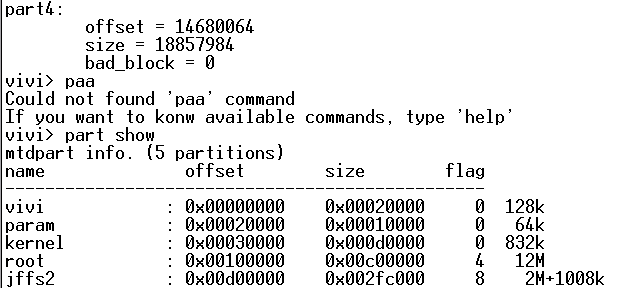 VIVI的分區(qū)跟linux的分區(qū)最好一致,即使不一致,起碼你根文件系統(tǒng)存放位置得跟kernel分區(qū)表一致,而且掛載參數(shù)要正確