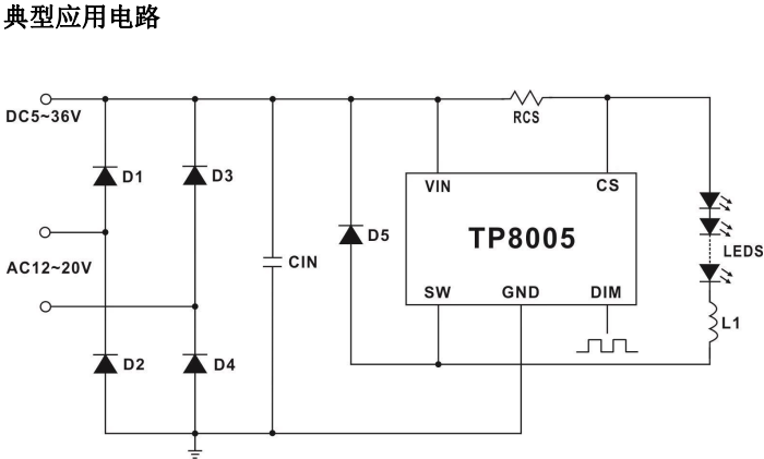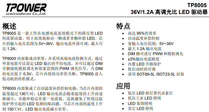 天源TP8005 36V 1.2A 高調(diào)光比 降壓型 LED 芯片