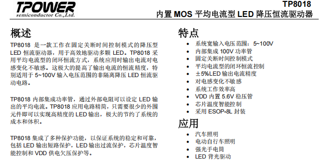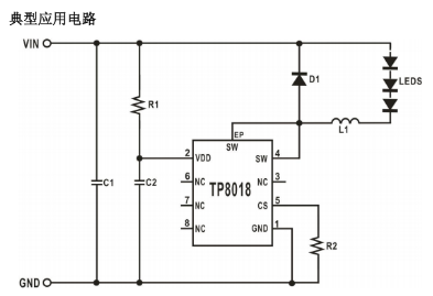 天源TP8018 內(nèi)置MOS 1.8A 平均電流型 LED 降壓恒流驅(qū)動(dòng)