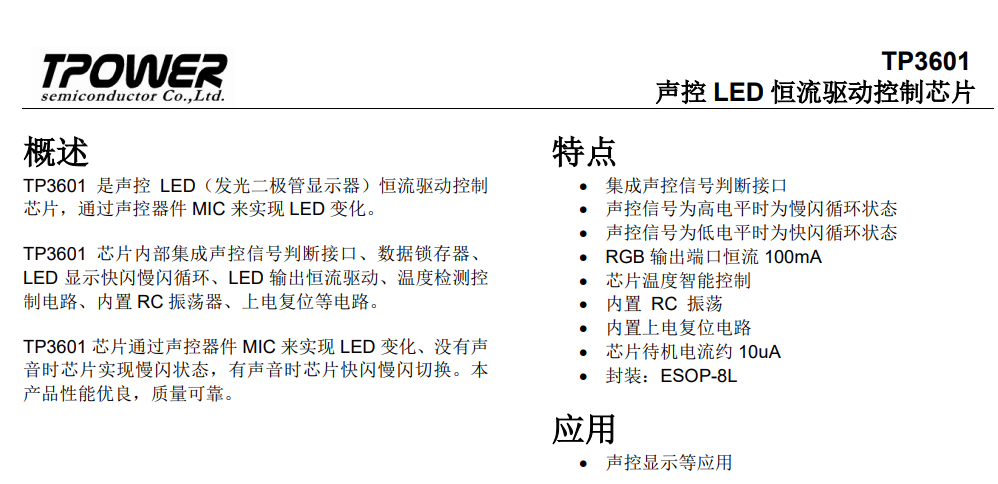 天源TP3601 聲控 LED 恒流驅(qū)動(dòng) 一手廠家 [