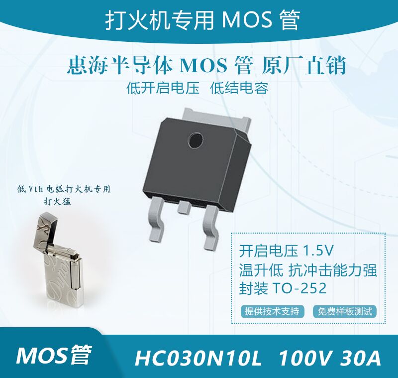 今天分享一款專門為應(yīng)用于電弧打火機(jī)市場設(shè)計(jì)開發(fā)的一款MOS管,低開啟電壓 低內(nèi)阻,特別適合應(yīng)用于電弧打火機(jī),其特點(diǎn)是打火猛、溫度低、打火時(shí)間長、火花四射。 型號:HC030N10L參數(shù):100V30A ,類型:N溝道MOS場效 ...